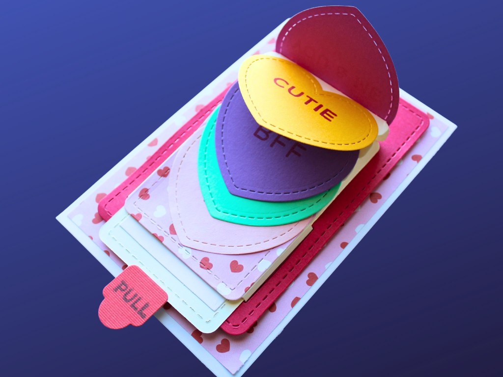 When I opened my Etsy Shop, I listed a card inspired by Sweethearts. It had five messages on different colored hearts. The card was a flip card; pulling the tab made the hearts flip to reveal a hidden message. See the pictures above and below. Do you like the concept? What messages would you like to see? It’s no longer in my shop but there is always next year. Please share your thoughts in comments or use the contact page.